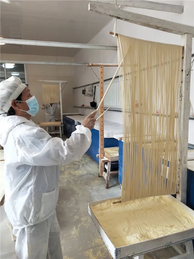 藁城宫面手工制作工序——上轴。籍永彪摄