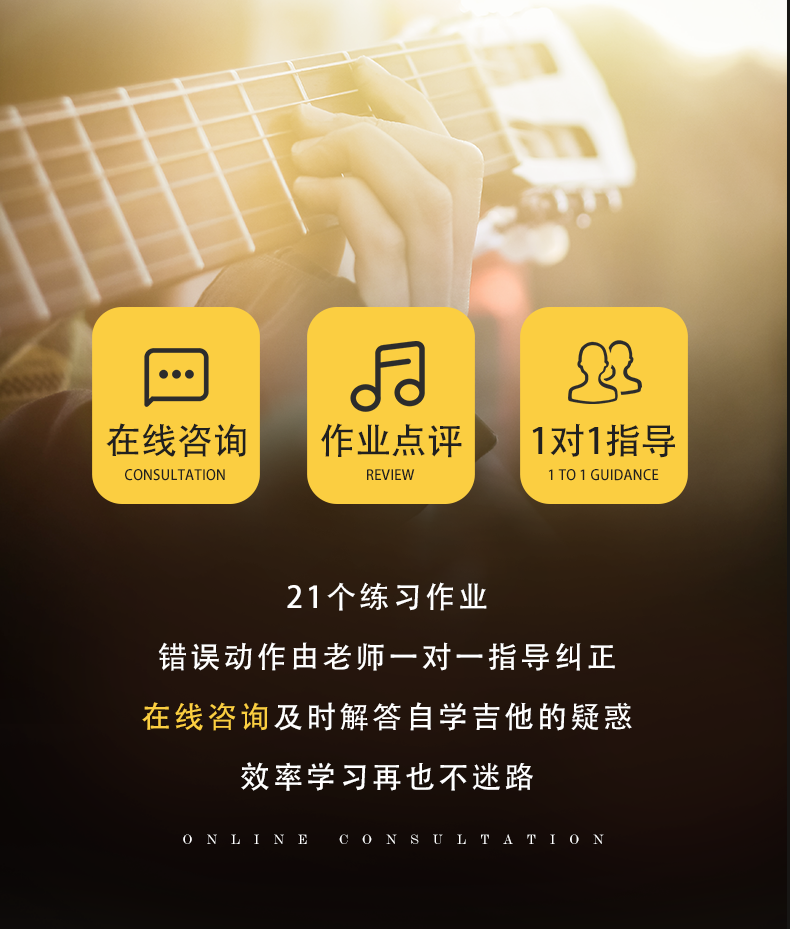 报名课程后可以添加吉他老师微信,自学的过程中遇到了问题可以随时向老师咨询。也可以把平时练习吉他的练习视频发给老师点评,我们会帮助你更有效率的学习吉他。