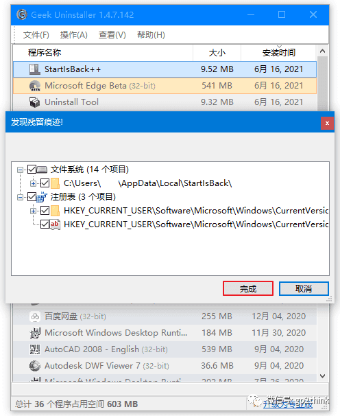Geek Uninstaller 免费干净,小巧易用,卸载效果也不错。