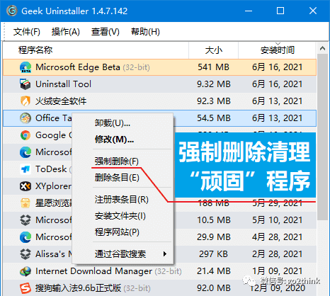 关注公众号 JustThink,在输入框回复210616或GeekUninstaller获取