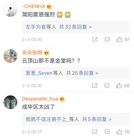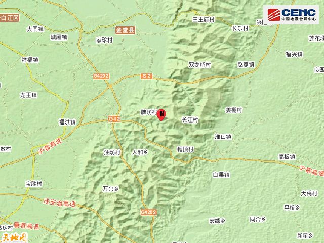 据悉,震中距金堂县14公里、距青白江区25公里、距龙泉驿区27公里、距新都区30公里、距广汉市31公里,距成都市区38公里。