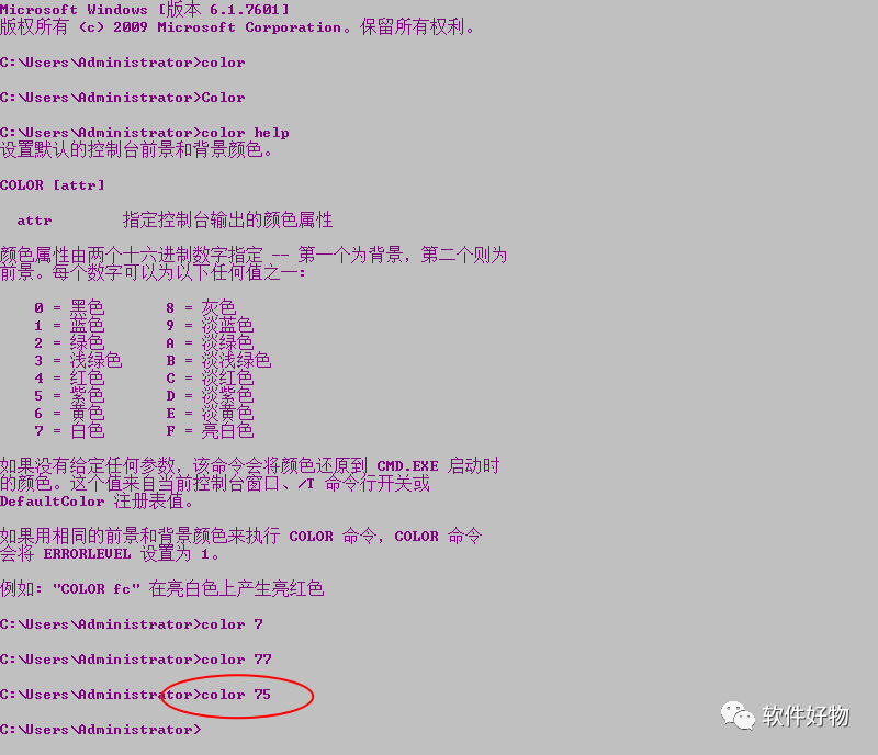 2、输入color75,就会同时改变背景色和字体颜色(第一个数字为背景色,第二个为字体色)