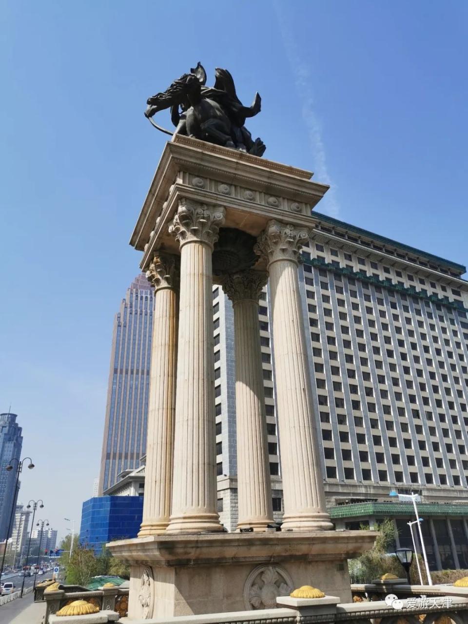 大光明桥四座雕塑融入了神话元素,桥墩上分别雕塑了神话中海神的女儿乘着骏马来到海河沐浴的大型塑像。