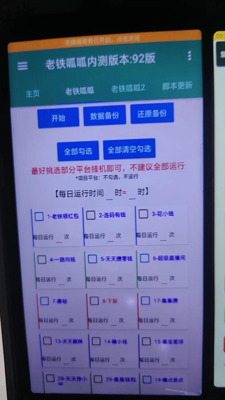 工作室可批量操作,目前做任务不检测ip,安卓脚本全自动挂机。