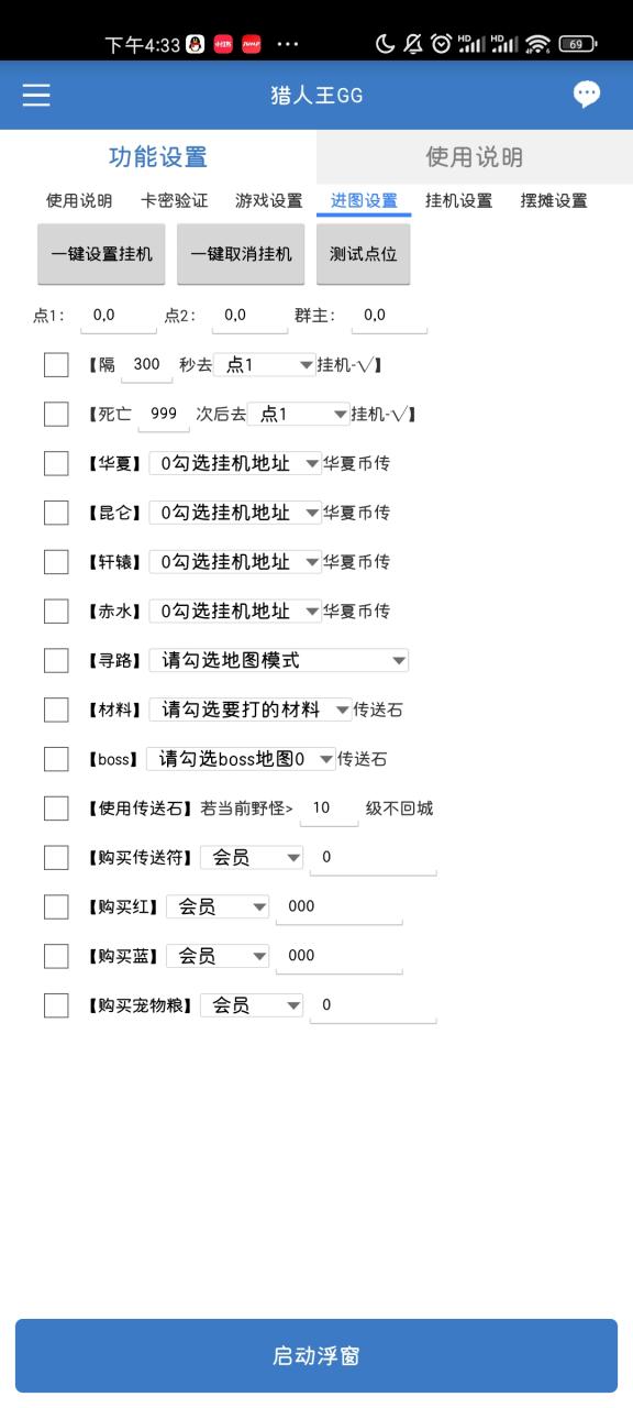利用全自动脚本做主线,升级,自动挂机主线/副本/悬赏/任务,自动摆摊自由交易。