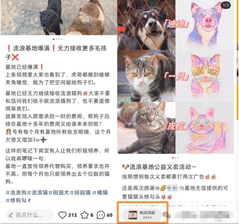 简单说下这个项目: 图文就是单纯的狗狗或者猫的求救援视频,大概就是这个意思,会介绍自己的情况,希望有爱狗人士进行救助、帮扶等,或者推广卖产品,比如义卖*、垫子等狗狗会用的产品,让别人购买救助,100块东西收到货也就是几十块钱的成本。