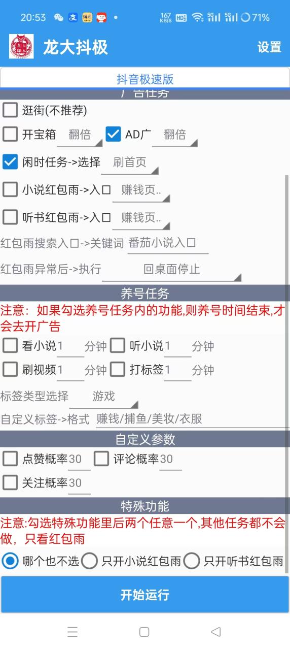 抖音极速版目前小说里有双红包雨,单广告2000,金币1万比1,脚本自动看广告