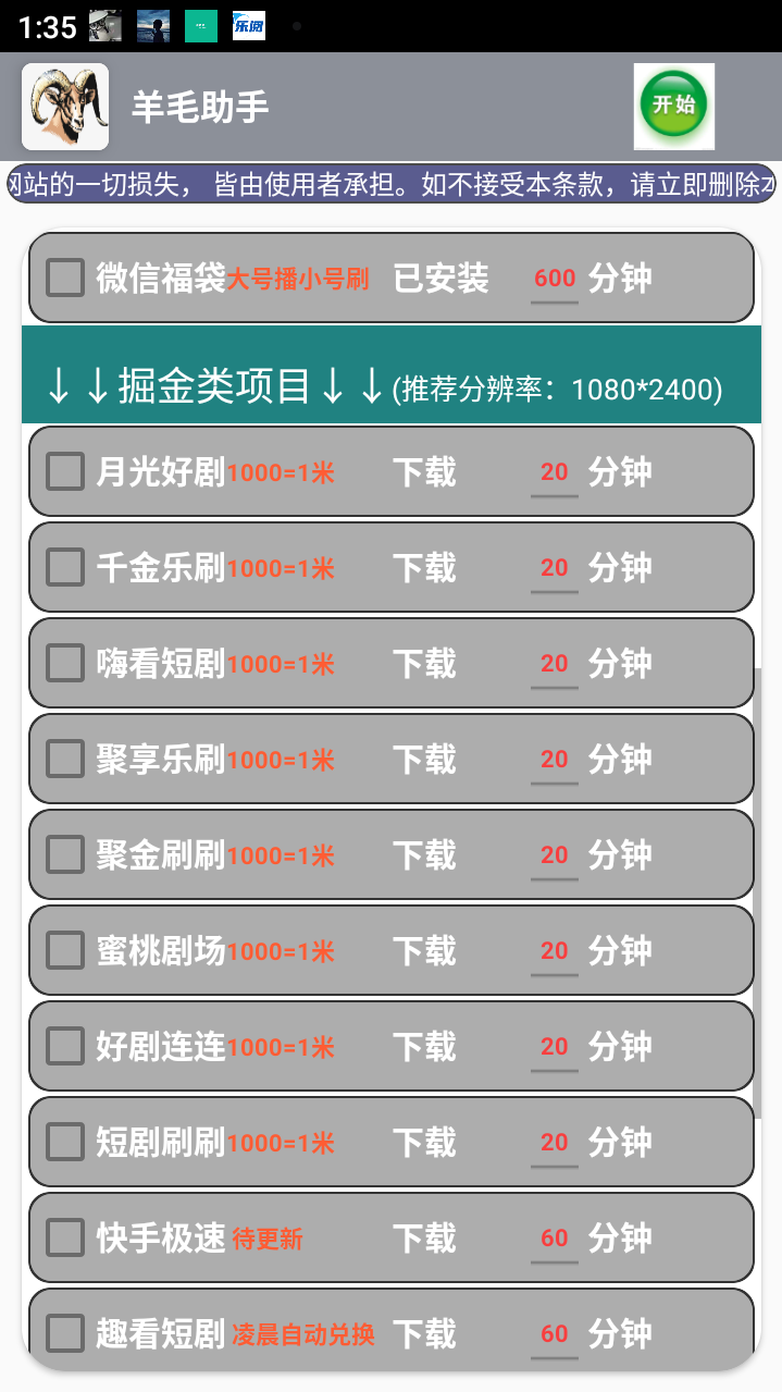 软件支持全自动:小游戏类.福袋类型,短剧掘金类。各种极速版