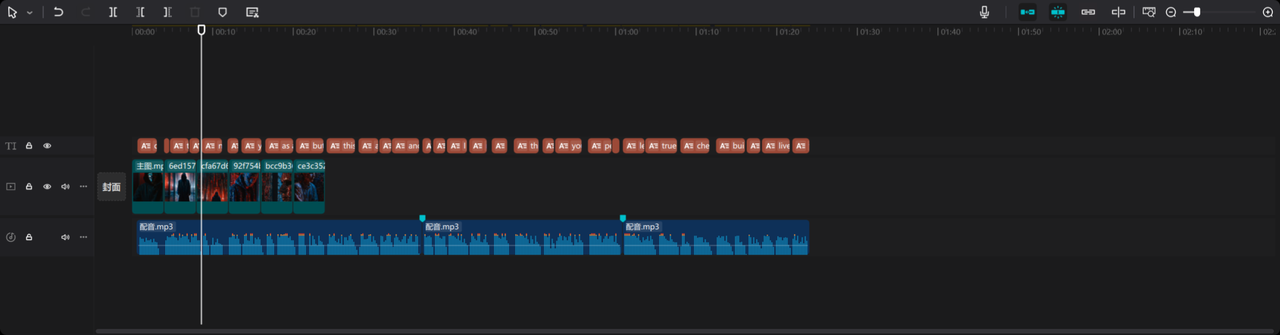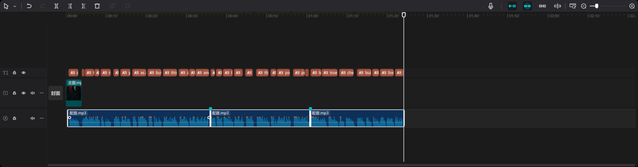 在剪映中,我们智能识别字幕,将配音每一段可以打一个标记分割一下,方便一会我们生成的视频不乱,当然,这一步也可以省略。