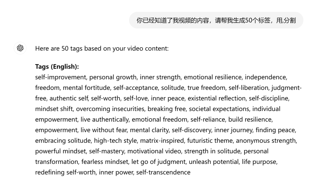 可以直接询问chatGPT看需要填写什么标签,也可以寻找办法去看一下对标账号里有什么标签,我这里直接问GPT。