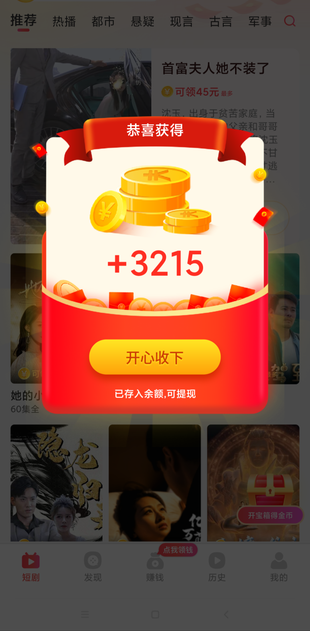 -通过短剧平台里面的宝箱广告,获取任务奖励。