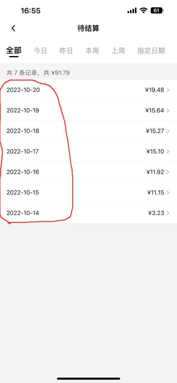 二、关于提现:比如说今天截止凌晨12点你的某个帐号刷完了15元,也就是加起来共1500流量,7天一个结算周期,如果每天都挂机刷流量,7天后的每一天都可以提现15