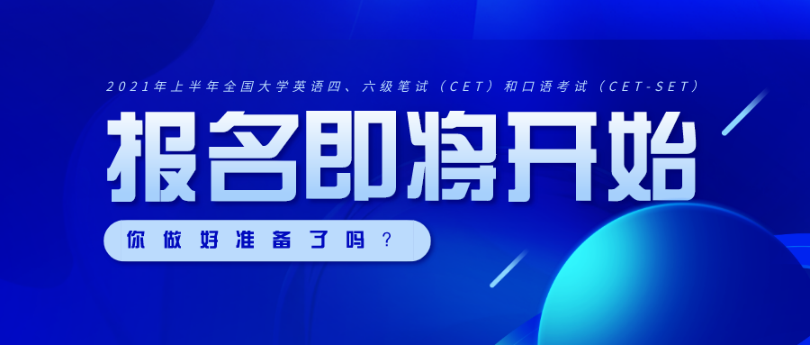 2021年上半年全国大学英语四、六级笔试(CET)和口语考试(CET-SET)将分别于6月12日和5月22日-23日举行。其中,6月12日上午开考四级cet,下午开考六级;5月22日开考英语口语四级,23日开考英语口语六级。