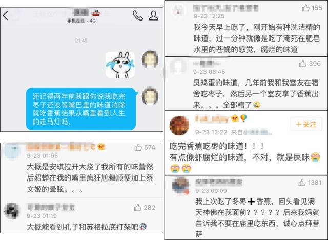这真是很AMAZING啊!香蕉和枣明明都是甜甜的水果啊!但仔细回想我25年来还真没一起吃过……随后有诸多网友纷纷分享了自己的吃后感受!描述也是五花八门——
