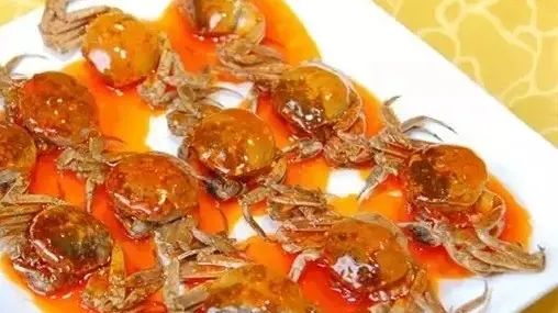 酸沙紫蟹是最经典的津菜,用葱丝、姜丝、干红辣椒丝炝勺,经基本调味,或蒸或煮,使主科成熟,然后浇上卤汁而成,菜色泽金黄,溢香醇美,蟹黄蟹膏更是好吃的停不下来。