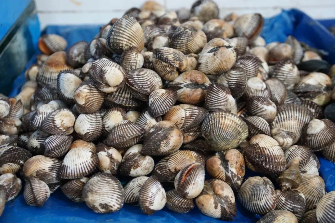 海鲜市场专卖螺类贝类的,摊子上有一座座小山,海螺按大小分批,花蛤、毛蚶、蛏子、海蛎子,各种花纹争奇斗艳。