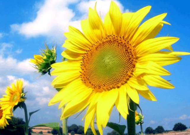 4、田间管理。主要包括中耕除草、肥水管理以及辅助授粉,每年进行2-3次中耕除草,确保植株生长强健,第一次可间苗进行,中耕3-4cm,在追施适量的尿素,第二次在一星期后,这时深耕8-10cm,第三次在结盘时,深耕3-4cm,在追施肥料。向日葵的人工辅助授粉极为重要,可提高结实率向日葵的花语和寓意,增加产量,提高收益。具体方法为:戴上手套,在花开的2-3天后,用手逐个对其触摸,人工辅助授粉最好在上午或傍晚,避开正午的高温时期。