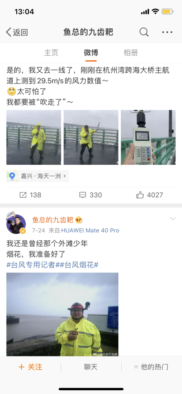 之前“利奇马”台风登陆时“承包外滩”的“台风专用记者”俞金旻,今年也去一线报导了。