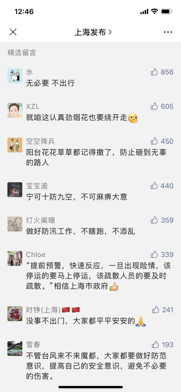 上海市民的防台宗旨:不能有丝毫懈怠和侥幸心理!