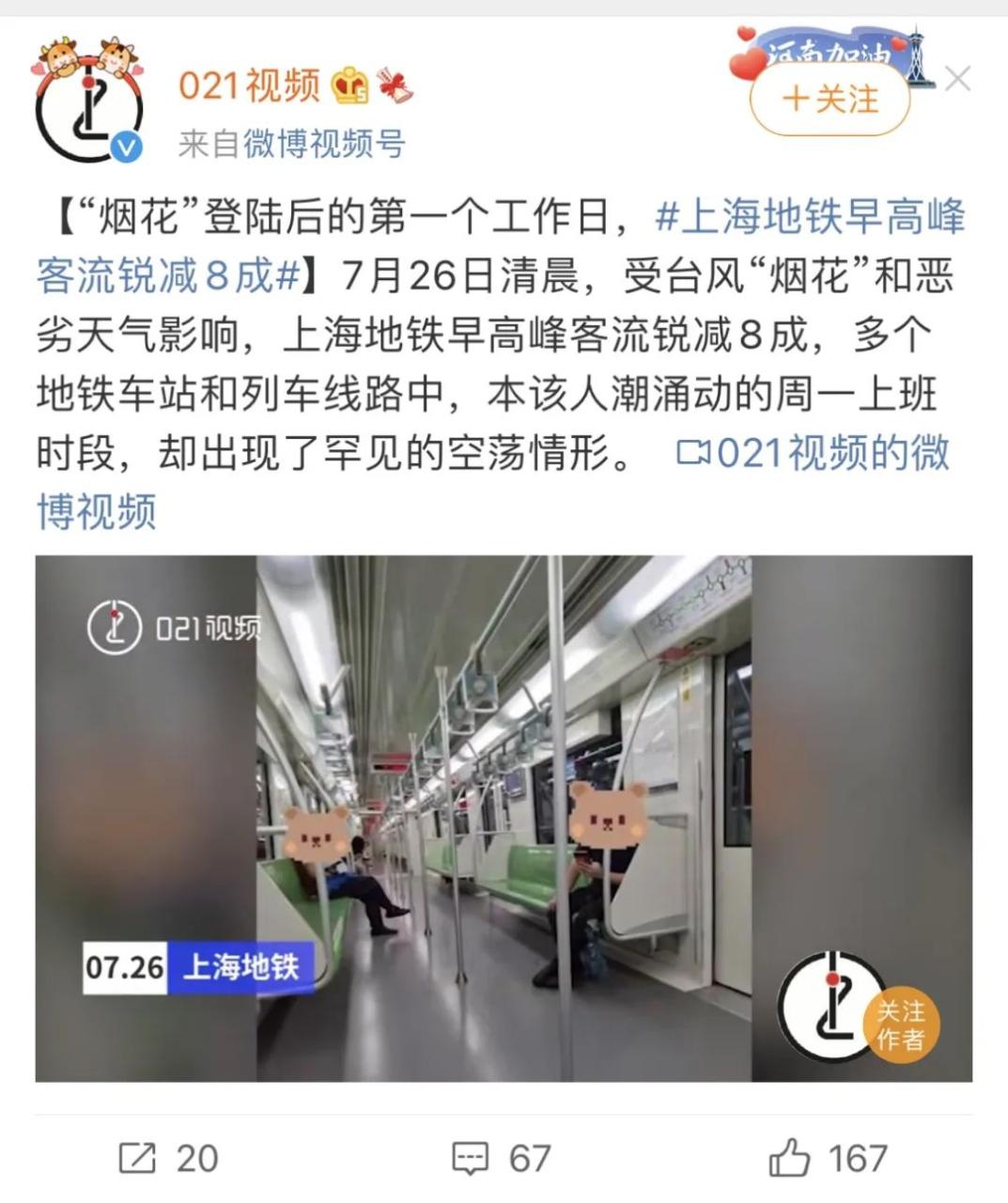 台风来袭的第一个工作日,上海地铁早高峰客流锐减8成烟花易冷,不少人都开启了居家办公模式。