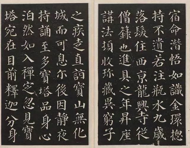 那么,为什么米芾对唐朝稍微出名点的书法家都嘲讽了一遍,却唯独对裴休略加赞赏?这与米芾挑剔眼光有很大关系,他符合了米芾审美或者风格取向。我们拿裴休楷书代表作《定慧禅师碑》来欣赏。