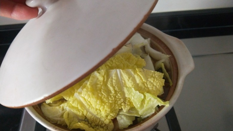 食材处理:大白菜去头去根,洗净,直接放入暖暖严选铸铁锅中。
