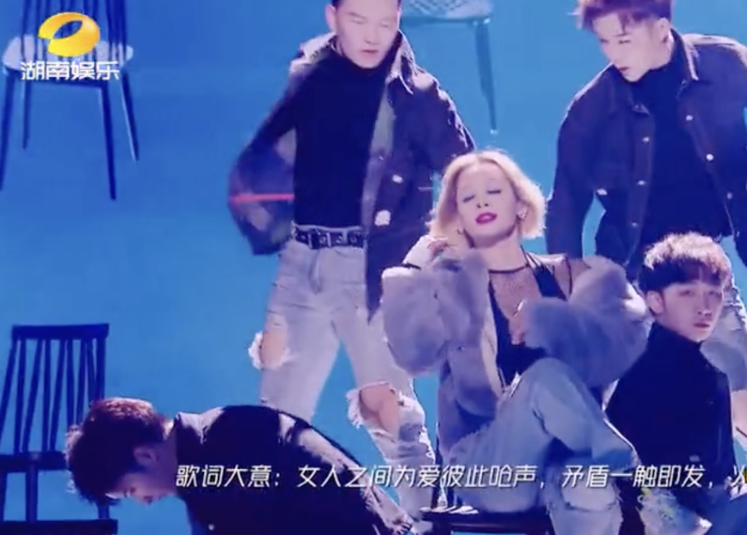 无独有偶,在《乘风破浪的姐姐》中,姐姐们唱着张惠妹的《傲娇》,字幕中却像翻译外文歌曲一样,只滚过歌词大意。