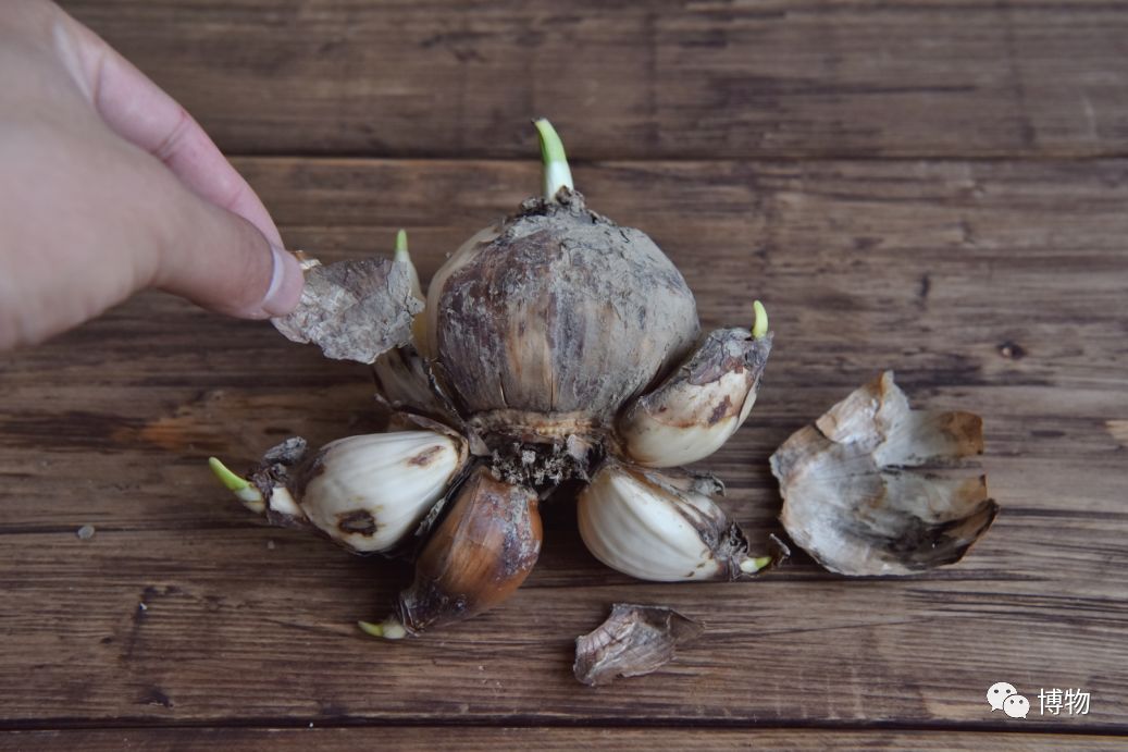 一个好球由一个巨大的母球和几个匀称的子球组成,你会发现这几个球几乎都排列在一个平面上。在这个平面上,母球越宽,里面的花芽越多。把外层的干皮剥掉,露出白胖的球体,洗干净。
