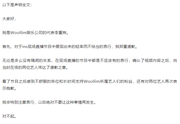 李重烨挥手打了南优贤的头部,然后还骂了很多脏话,当着直播的面,大家也不好发作,后来,酒醒之后,李重烨道歉说自己喝多了,然后粉丝们也挽尊,说大家关系很好啥的。