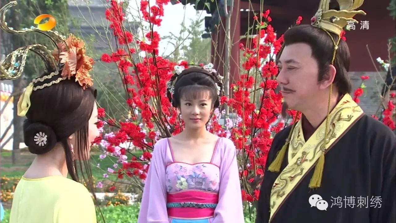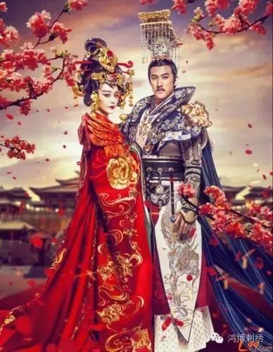 杨玉环宛如嫦娥,盛装来迎。二人在天上,永续人间之缘。