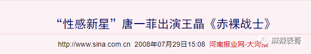 2008年,唐一菲凭借《红楼梦》有了点小水花,同年,唐一菲和王晶合作电影《赤裸战士》。