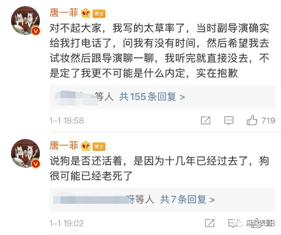 唐一菲把所有的锅几乎都甩锅了网友,怪网友骂她,导致她拒掉了戏,导致她都没有和蒋欣联系。