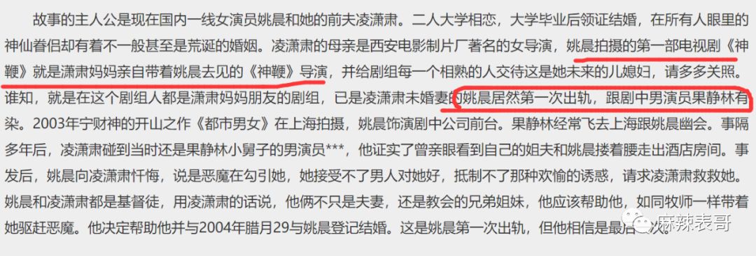 力挺凌潇肃的巨春雷,说姚晨出轨了好几次,说姚晨第一次接戏,还是凌潇肃的妈妈带她去见的导演。