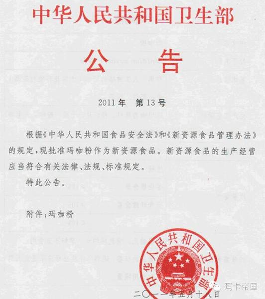 国家都已经发文公布,玛卡属于新资源食品!2000年玛卡被国际登山联合会做为指定产品使用,2001年美国太空总署决定将玛卡开始用来作为太空飞行员的食粮。由此,足以证明玛卡是食物而不是药!