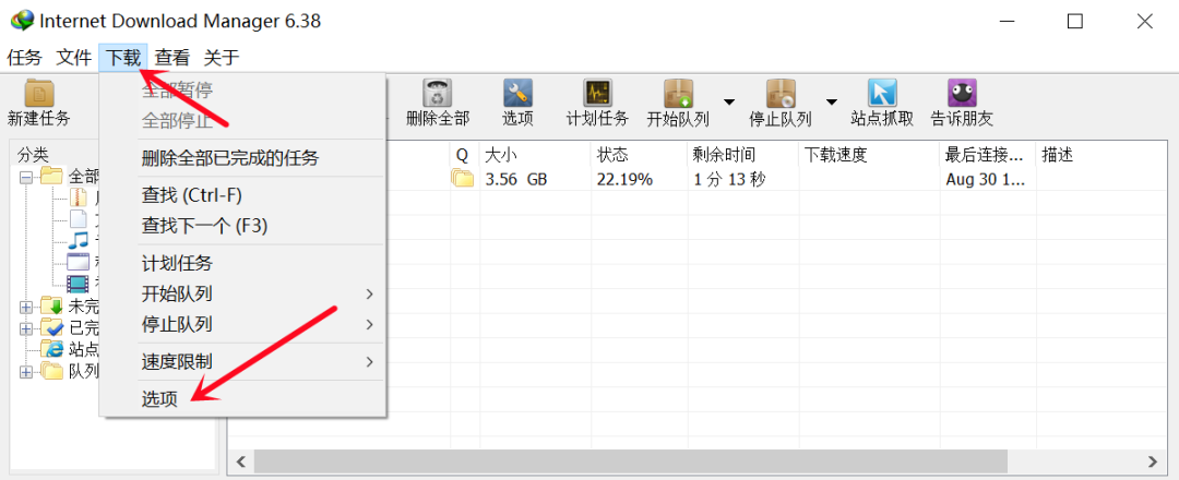然后安装IDM下载器,依次点击下载-选项功能(解析网站、验证码和下载器已为大家备好)