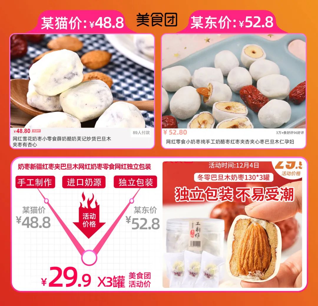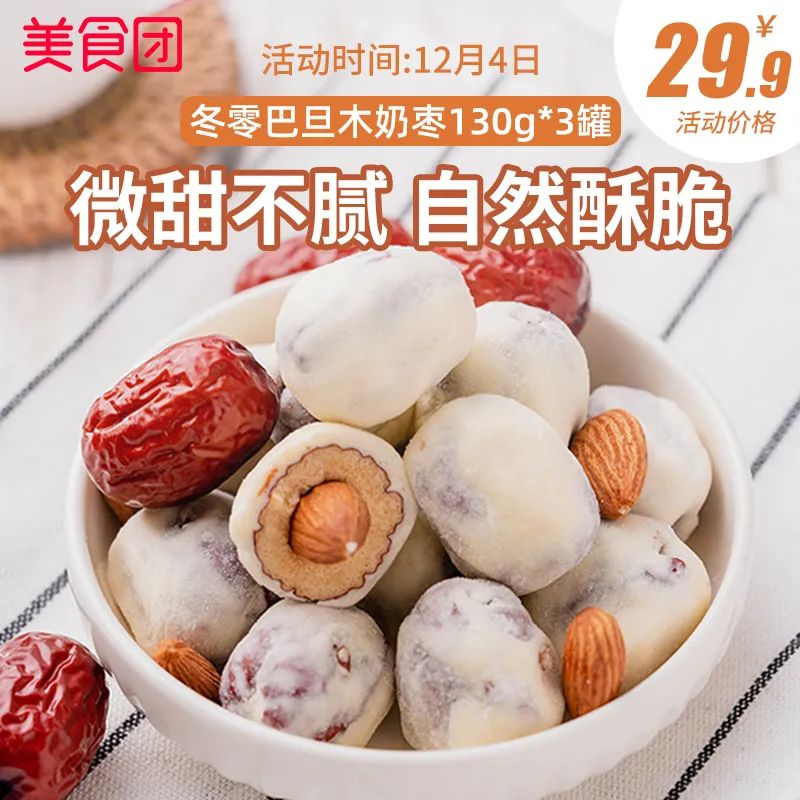 同规格某宝、某东上的奶枣也要48—52.8元了。上美食团,冬零巴旦木奶枣更优惠,让你少花冤枉钱!仅需29.9元三罐!整整三罐!!每一颗奶枣还全都是独立小包装,口感和性价比都是一流的!