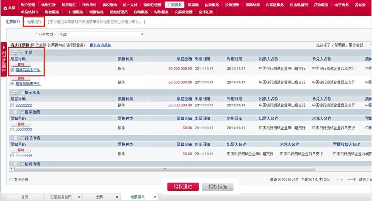 3、如果经办人员发现填写的票据内容不正确,可以通过“出票撤回”、“提示承兑撤回”、“提示收票撤回”,进行撤回操作。如果企业想将未发送给对方企业的票据进行作废处理,可通过“撤票申请”进行操作。(见上图左边红框部分)