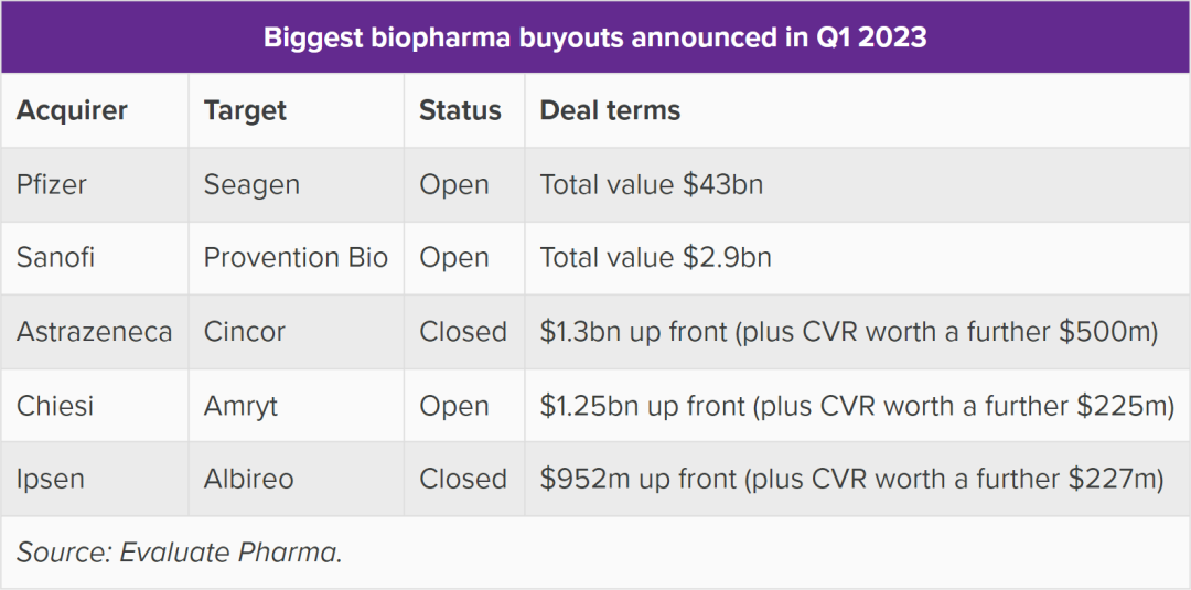 小额交易或许是减少审查麻烦的一条出路。最近,Evaluate Pharma梳理了纯粹的药物开发商在今年第一季度披露的全面收购。如果不包含辉瑞和赛诺菲的贡献,剩下的交易额总计仅有88亿美元。