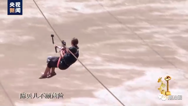在去怒江拍摄交通扶贫时,陈贝儿不顾危险,亲身体验了过去百姓过江用的溜索。