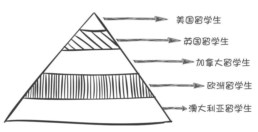 据说留学圈内存在着这样一条鄙视链:去美国的看不起去英国的,去英国的瞧不上去加拿大的,去加拿大的鄙视去欧洲的,去欧洲的嫌弃去澳大利亚的。