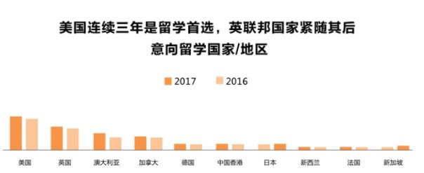 处于鄙视链顶端的美国与英国毫无疑问是中国留学生海外留学的两大热门选择,《2017 中国留学白皮书》调查显示,美国依然是中国学生申请留学目标国家中占比最高的,紧随其后的是英国,而且呈逐年升高的趋势。