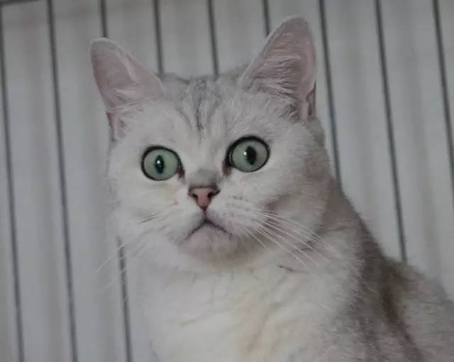 银渐层色是混有金吉拉血统的英国短毛猫,金吉拉以其漂亮水汪汪的大眼睛著称。因此普遍的银渐层色英国短毛猫的眼睛都比纯基因的蓝色英国短毛猫要大,眼睛越大品质越好。