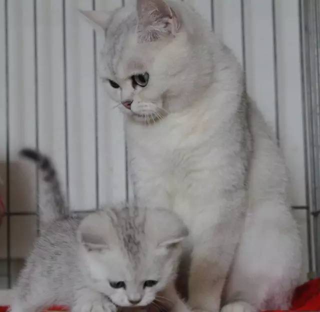银渐层色是虎斑色的退化。当斑纹越来越不清晰最后完全退化均匀的时候,那就是银渐层色了。由于银渐层色英国短毛猫繁育历史不长,因此小宝宝出生后会有返祖现象出现。刚刚10天的宝宝你可以清晰的看到豹点或者标准斑,宝宝的基因记忆会清楚的告诉他们以后该怎样长大,只要您购买的宝宝有血统追踪且两代以上都是标准的银渐层色英国短毛猫,一般他们都会在几个月时间内把自己的毛色完全退化成银渐层色。