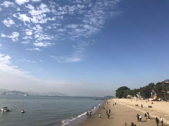 这里都是热闹且文艺气息十足的。不看沙滩的质地和细腻程度,亦或者是渐变蓝的美丽,这里的海滩平静而美好,重的是一片心情,因为这里的环岛路可以走上一天,或者骑上自行车在环岛路上骑车呐喊,沿着这巨大的海滨花园,也可以走走,吹吹海风。