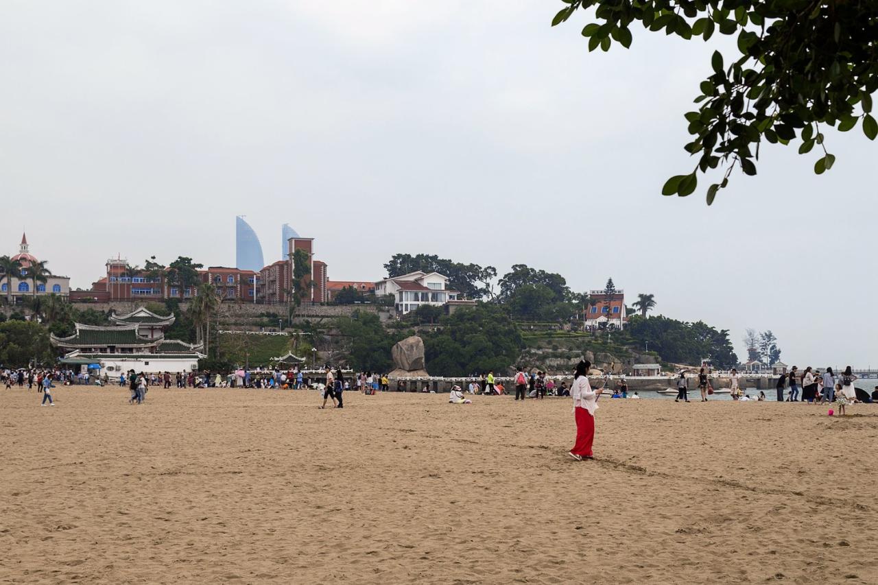 鼓浪屿上的景点也不少,想眺望厦门市区就要首选日光岩,想看大海那就去皓月园,想看精致的私人花园别错过菽庄花园。鼓浪屿上还有不少可玩海的沙滩,距离景点越远,沙滩的游客就越少