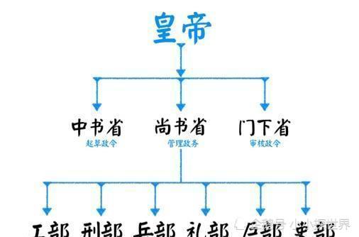 中书省掌管军国政令,替皇帝草拟诏敕、批答,长官为中书令。门下省负责审核中书省所拟诏旨、政令,如见违失,可予封驳,长官为侍中。尚书省执掌行政,是为执行机关三省六部,长官为尚书令,副职为左、右仆射。