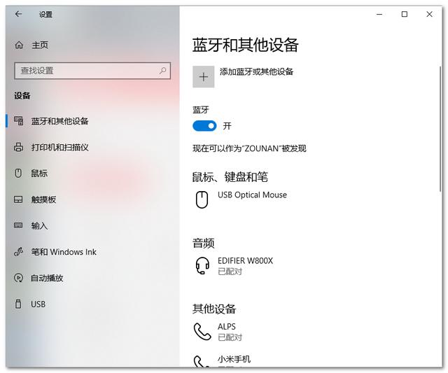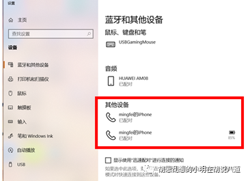 第一步:先在电脑的“设置-设备-蓝牙和其他设备”中,让win10笔记本电脑与智能手机配好对。