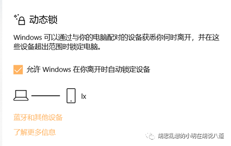 设置后,只要拿着与电脑配对好的手机走出蓝牙连接范围后,约1分钟左右,Windows 10就会自动将屏幕锁上。这种锁屏是不是既优雅又不失风度,同样,也适用于记性不好,起身离座忘了按Win+L的小伙伴们。