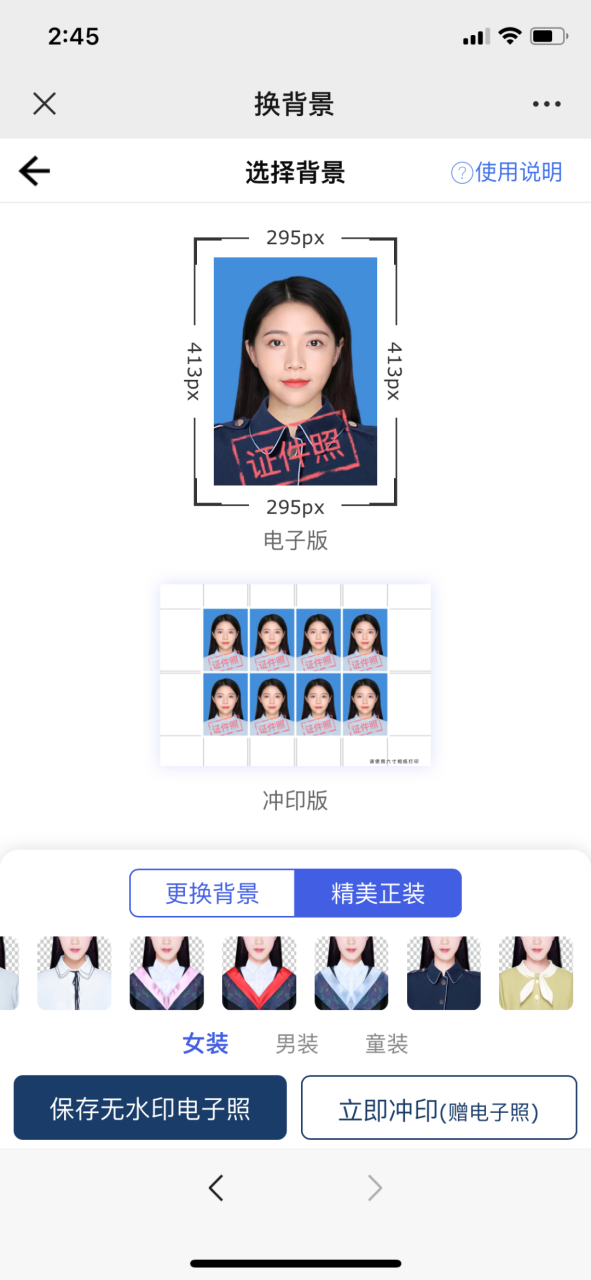 如果对证件照服装有要求的情况下,还能直接在制作过程换装,即换即可查看证件照换装效果,效果满意再保存。