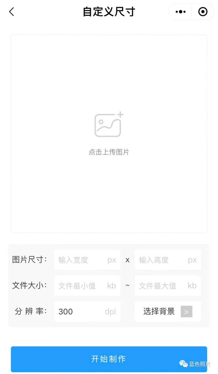 点击主页面“自定义尺寸”去制作一寸照片尺寸像素,上传照片,输入自己想要的照片尺寸、文件大小、分辨率,例如: